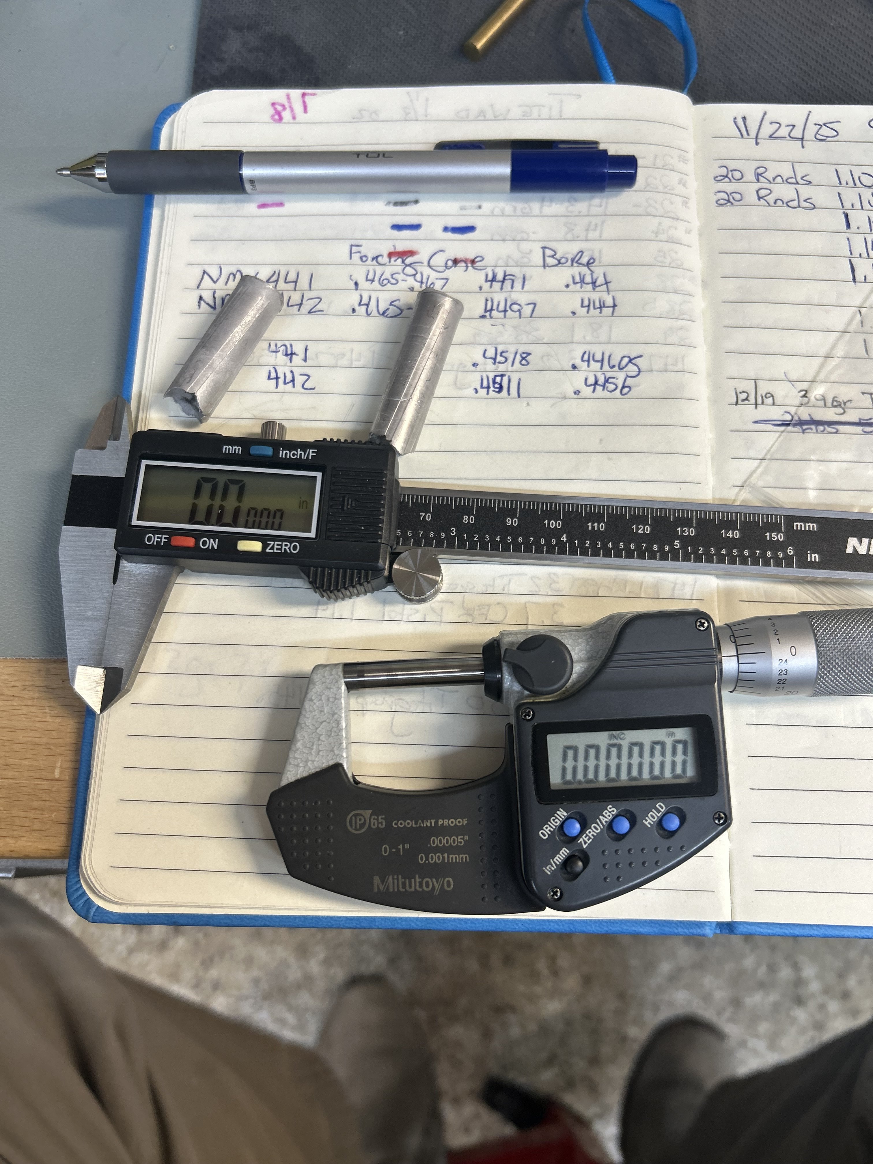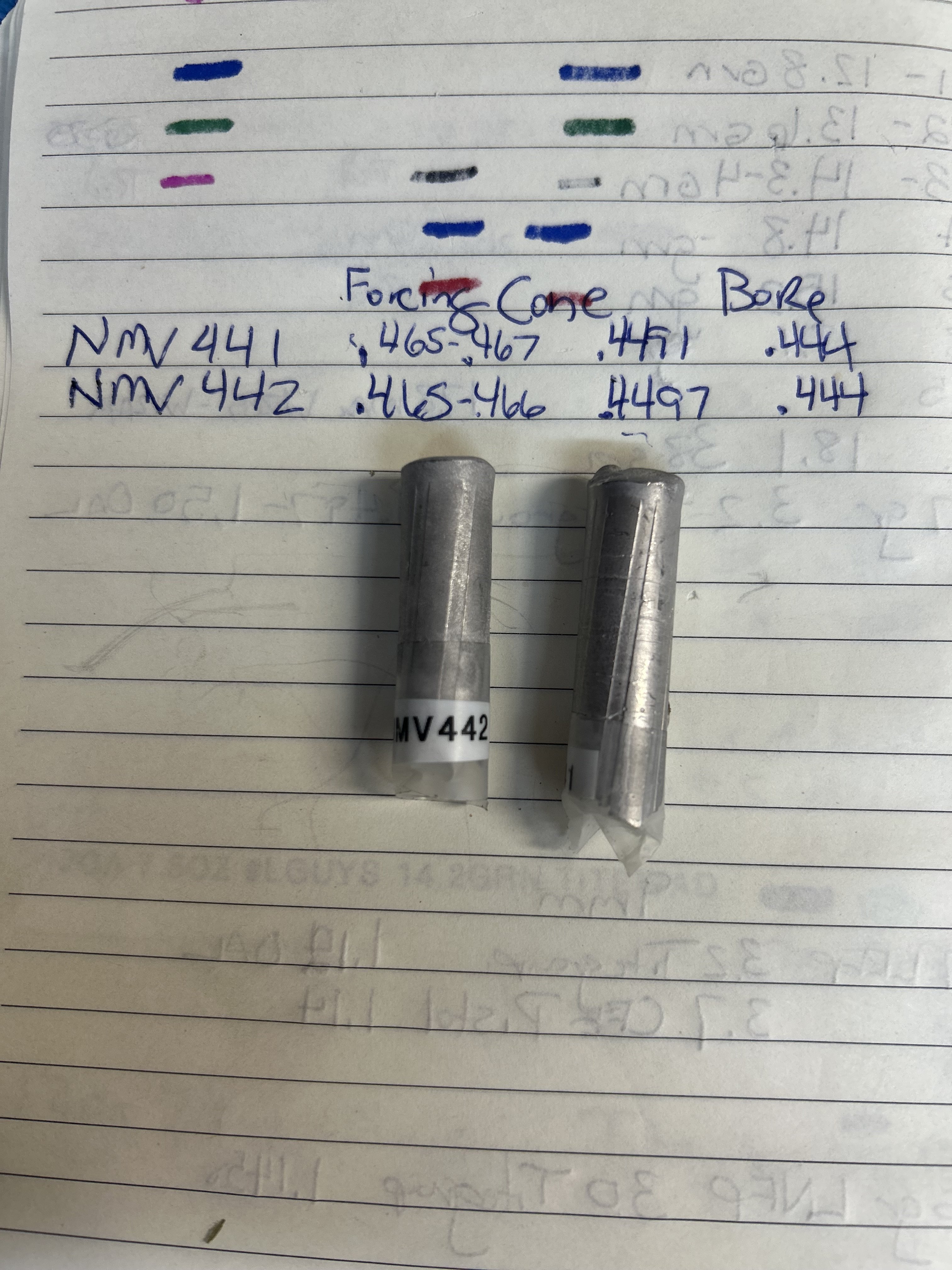Tall John Posted March 7 Author Posted March 7 (edited) .45 Colt NMV SLUGS Forcing cones are 0.465-0.467" (rotating slug w multiple measurements. Lands are 0.449-0.4518" Grooves are 0.444 - 0.4460" Depending where the readings are taken down the length of the slug.  shouldn’t I size my bullets at 0.452” after powder coating? cylinder chambers fully accept a +0.451” pin gauge but not a +0.452” gauge from my +0.0002” to -0.0000”gauge kit  Edited March 7 by Tall John Quote
